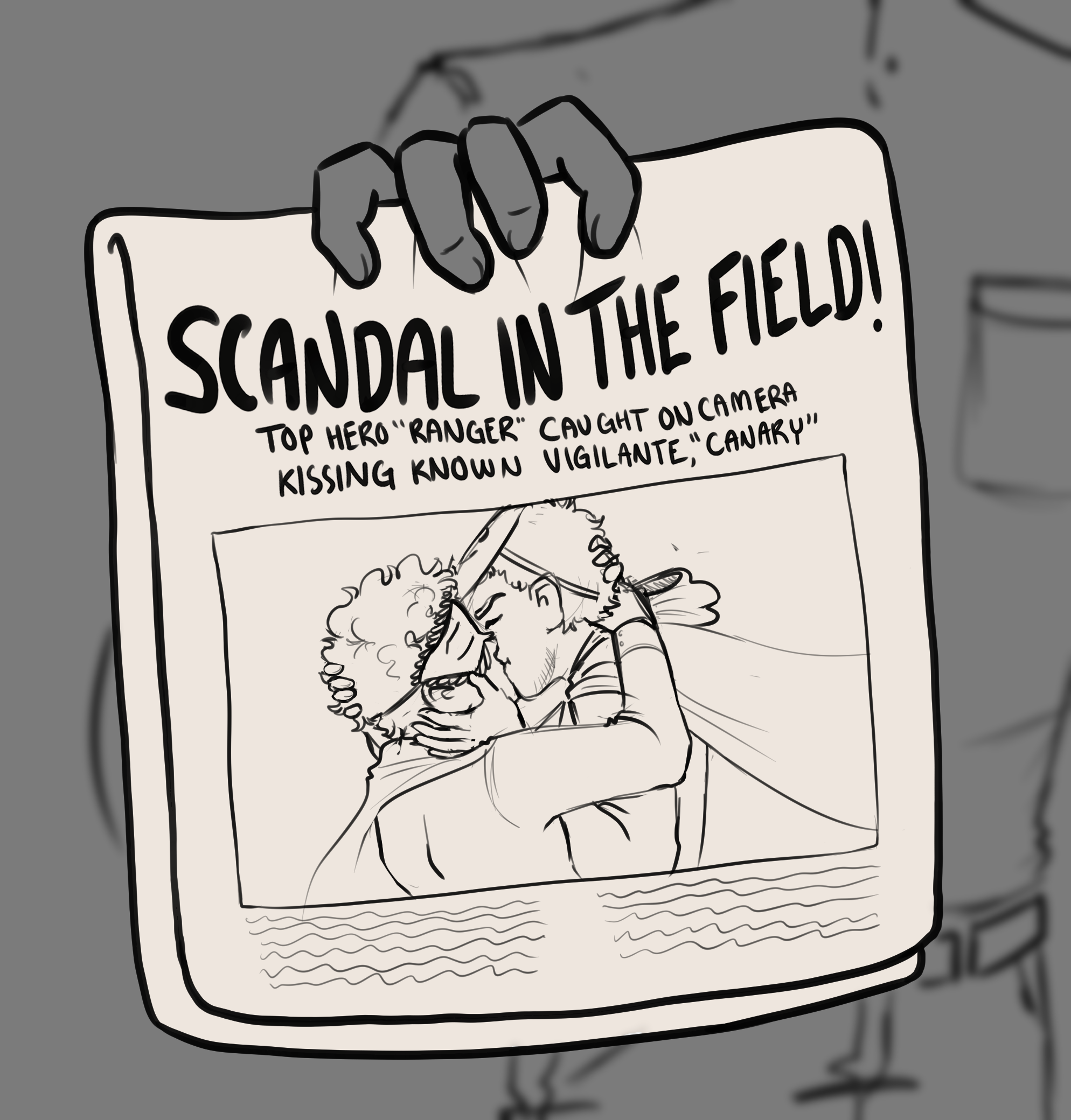 Sam turns. Behind him is one of the heroes that had accompanied him on the mission, though he can’t recall their name at present. They’re holding a newspaper, and as soon as they catch up to him, they hold it straight up to his face.
