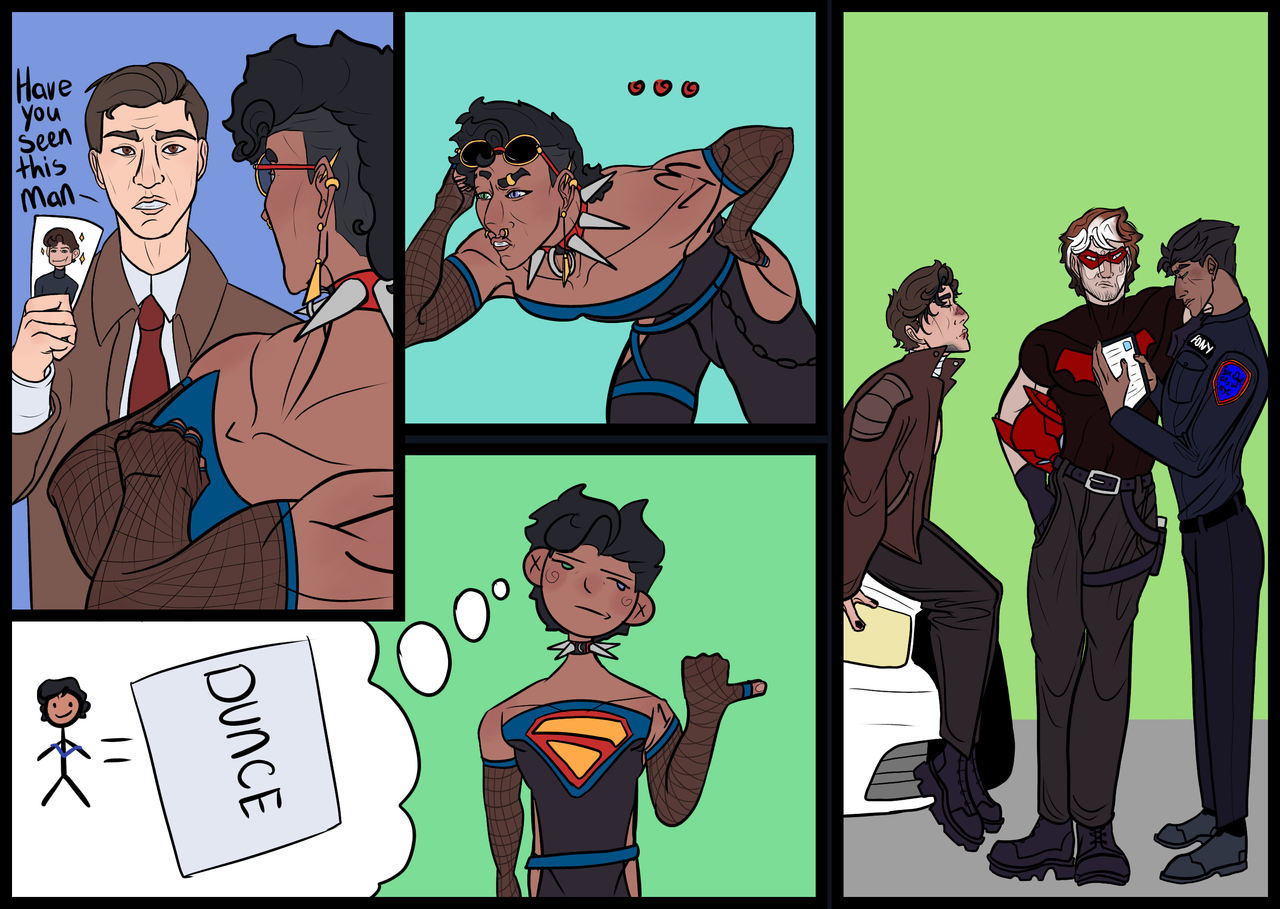 Something about the way she approached made the Dick’s skin crawl. Protectively, he slotted Cindy beside him and held her against his hip. Her claws wrapped around his arms and squeezed. Forcibly getting her off would take the act of breaking her fingers, so Dick just let her hold onto him. When she is ready to let go, she’ll let go.