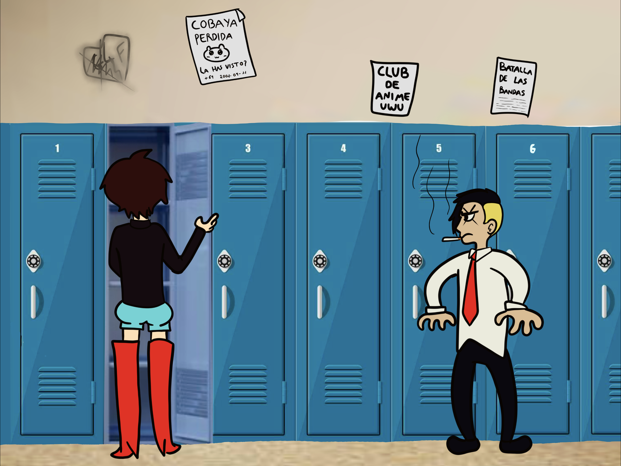 Al acercarme más pude ver a un muchacho apoyado en las taquillas. Tenía los auriculares puestos. Me dio un poco de vergüenza acercarme a hablarle, pero necesitaba encontrar el salón. Me arme de valor, me tape la nariz y me acerqué a preguntar.