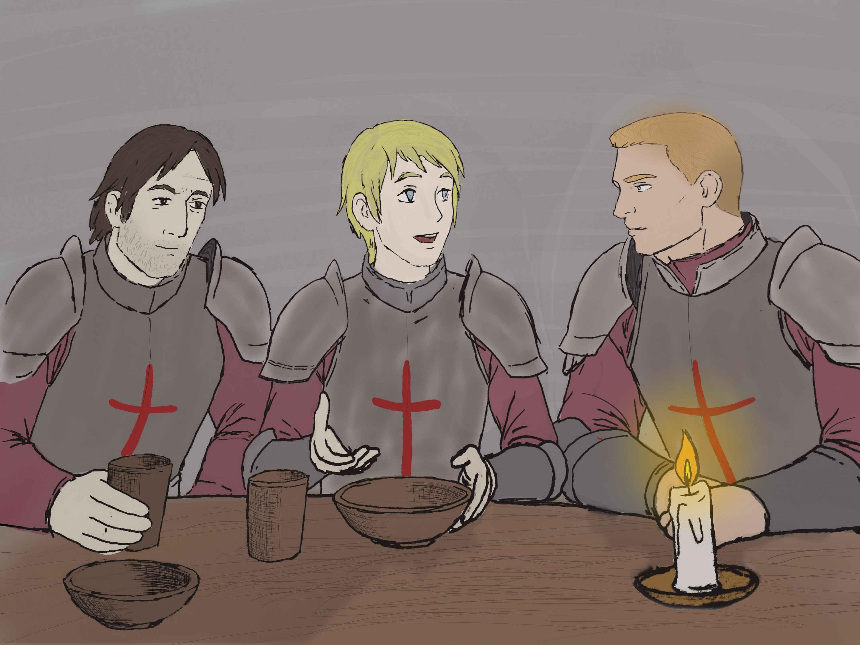 The second surprise was that, a sennight into their new tenure at the Gallows, Cullen had chosen to sit with Lux in the mess hall. His shoulders were tight and higher about his ears than normal, and the other Templars looked at him askance, murmuring to themselves.