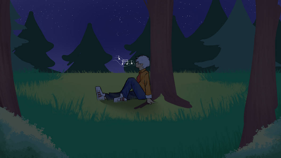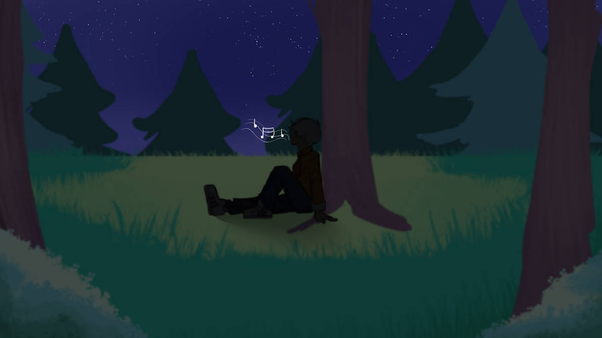 Gwen wasn't any better, following the tone blindly through the woods, until both of them found the source: a silhouette of a person they couldn't identify in all the sleep and darkness, sitting beneath a tree. However, hearing the soft humming relaxed them, bringing a sensation of sleepiness.