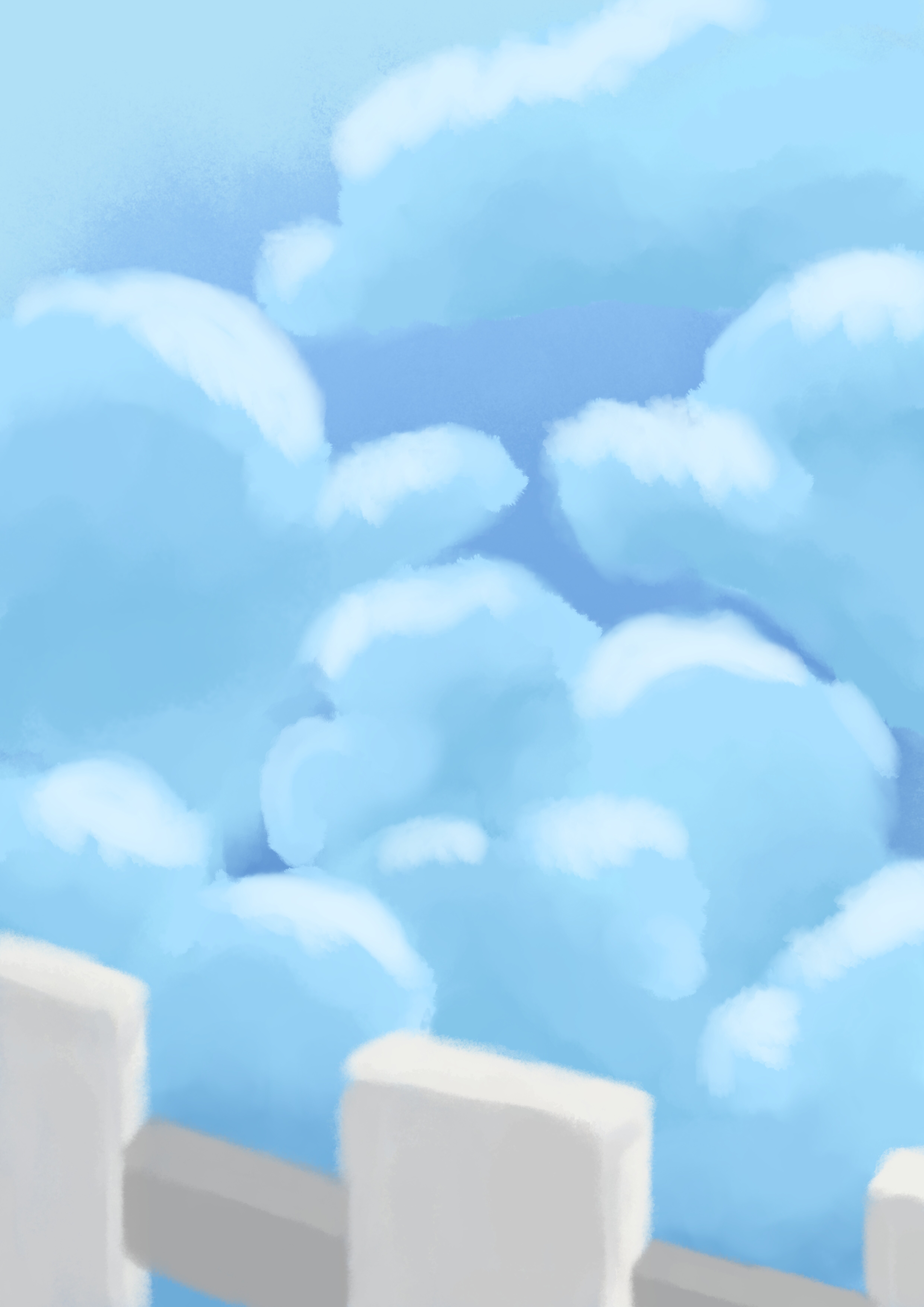 Just the bright blue expanse. A few clouds drift above although they don't ever go too far out, almost as if afraid to float too far away from the land. Perhaps they like it here. With shade to provide to the inhabitants, water for the plants and trees, really there's no reason to leave. And what if they do float away? What's there for them to rain down on?