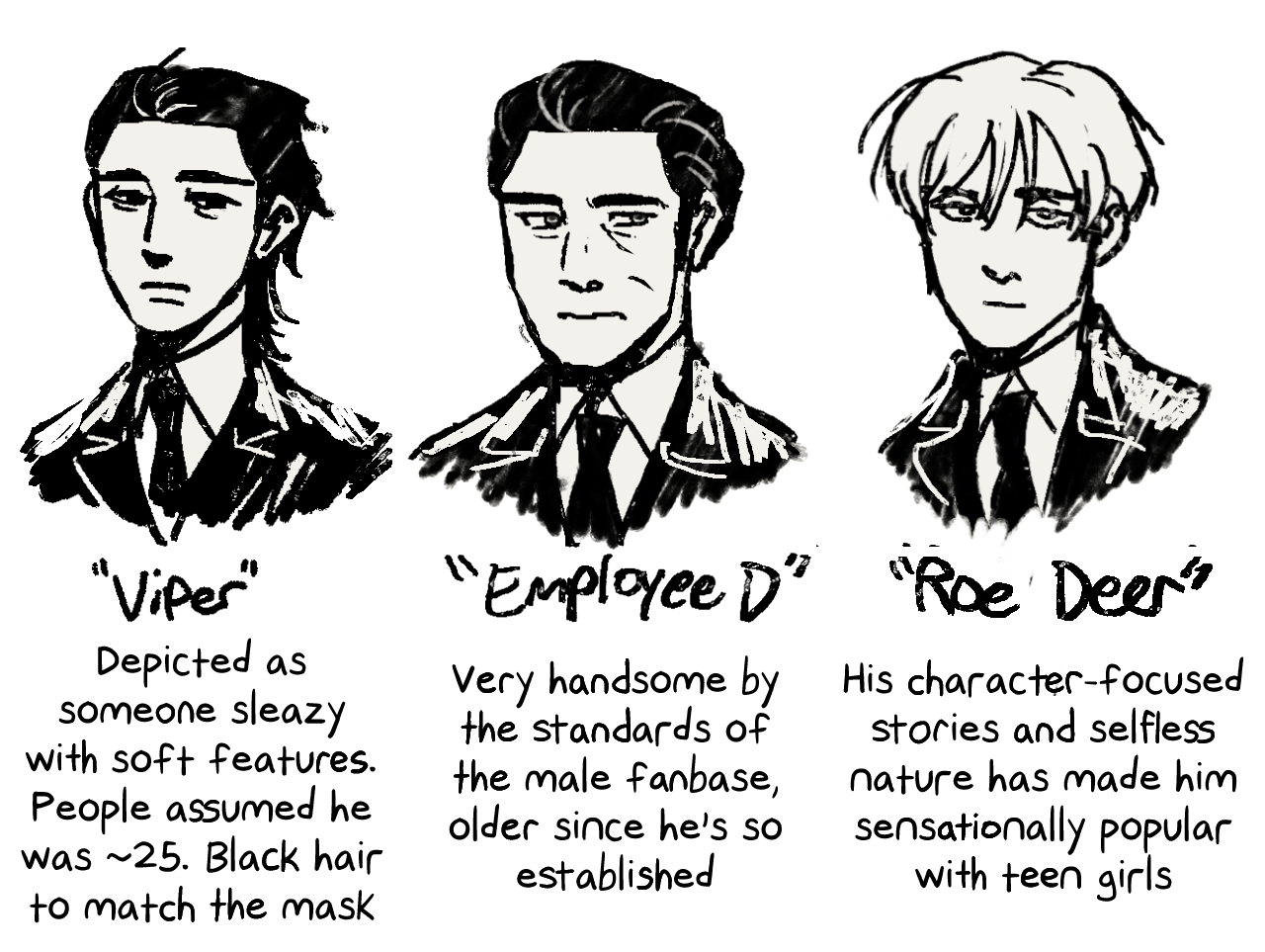 You may notice DER fandom has their own view on how Roe Deer should look, so here's a visual guide on their reading of their favies: