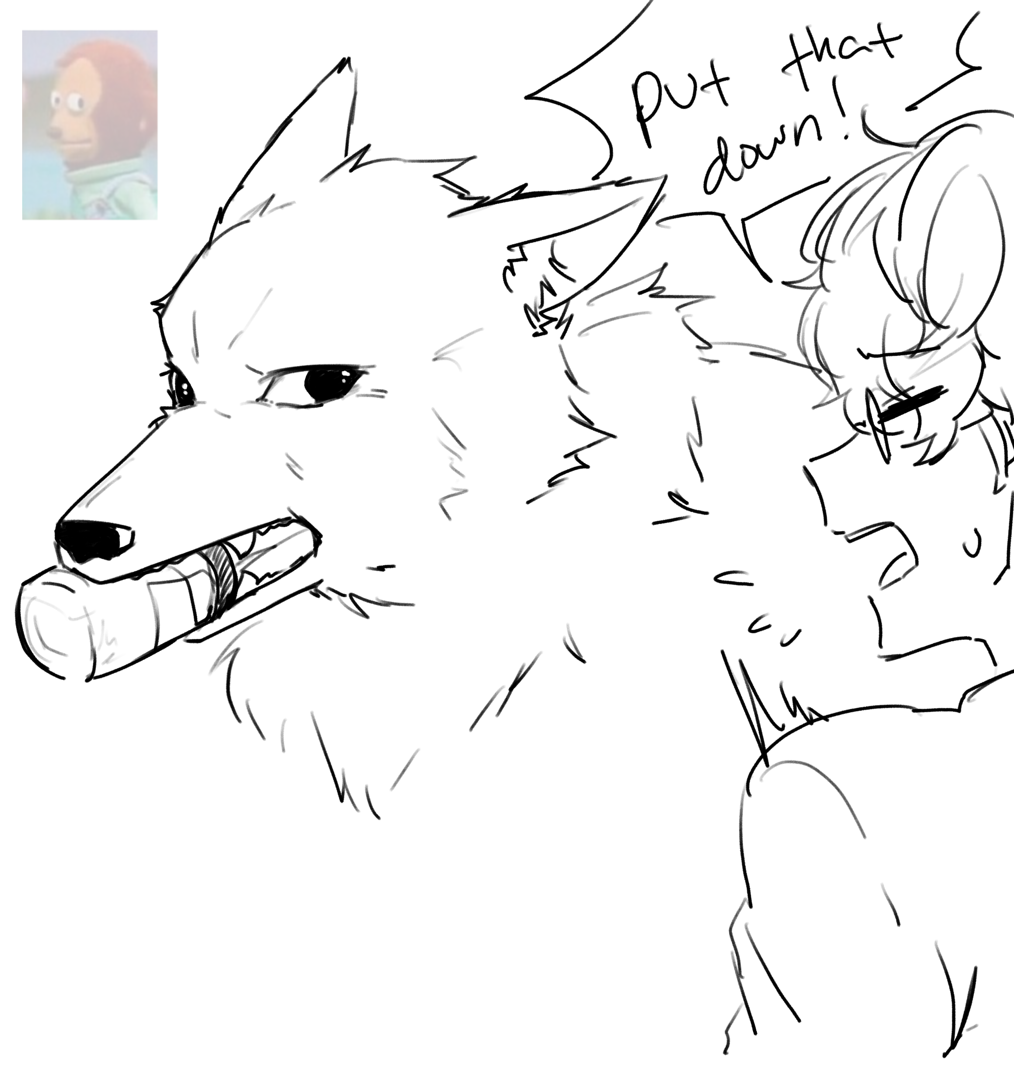 With his weapon away, Ren holds up his hands to show he’s unarmed—although a part of him knows how silly it is considering what he’s facing—and tilts his head down, hoping he’s remembering his canine body language correctly and it’s a submissive gesture like he means it to be.