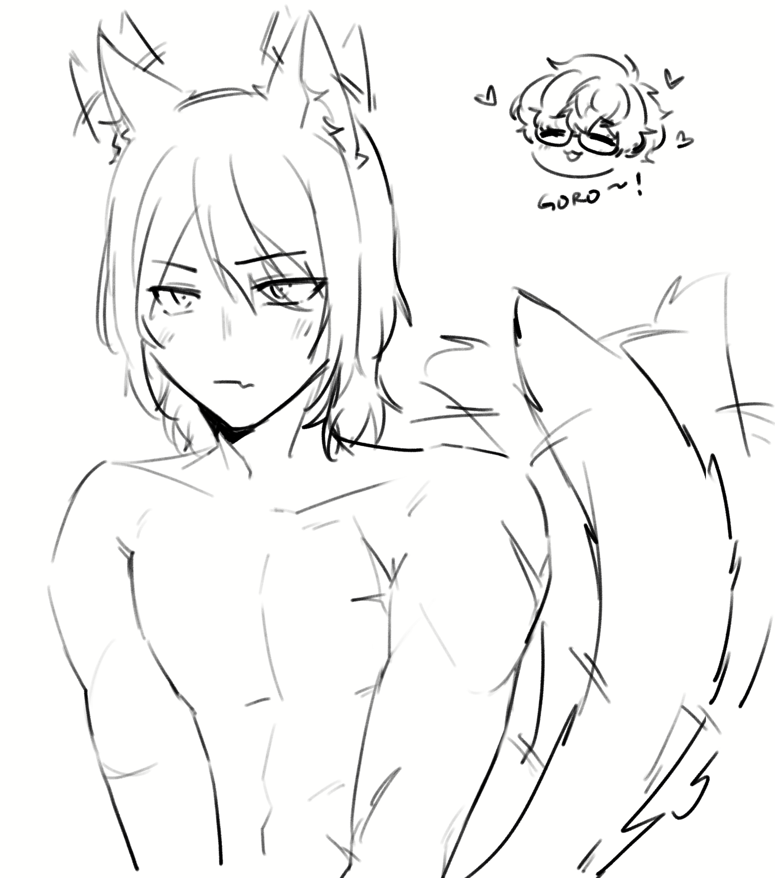 Goro lets out a soft huff as his eyes stay trained to the side. “Please don’t touch my ears. Or my tail, for that matter. They’re… sensitive.”