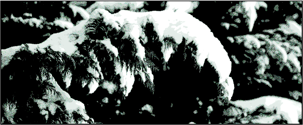 Our footsteps crunch in the snow as we walk. A little, chilly wind blows through the trees, the icicles hanging off the branches glint in what little daylight shines through the clouds.