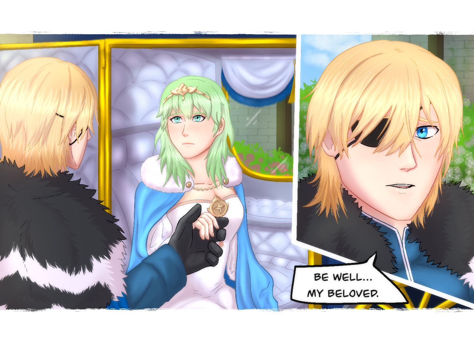 Byleth couldn’t look away. Not as he pressed a final kiss to her knuckles, the touch burning long after he’d released her hand. Not as Ingrid closed the door, not as the carriage began to move. She leaned out the window, staring at Dimitri—her husband, her beloved, her heart—until at last he’d disappeared from sight.