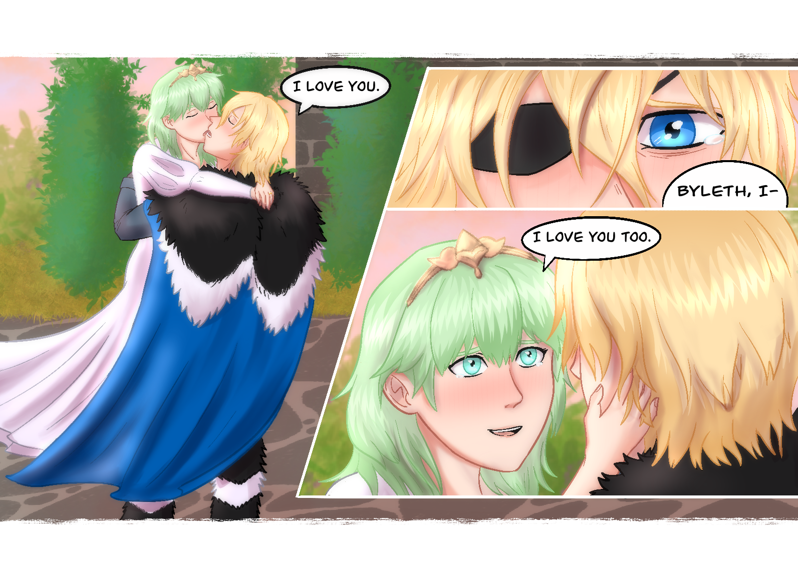 “Byleth…” he murmured, his devastated expression reflecting the pain in her ever-silent heart. She longed to console him, but couldn’t find the words. Instead, Byleth tilted her head back to accept his tender kiss, committing every moment to memory.