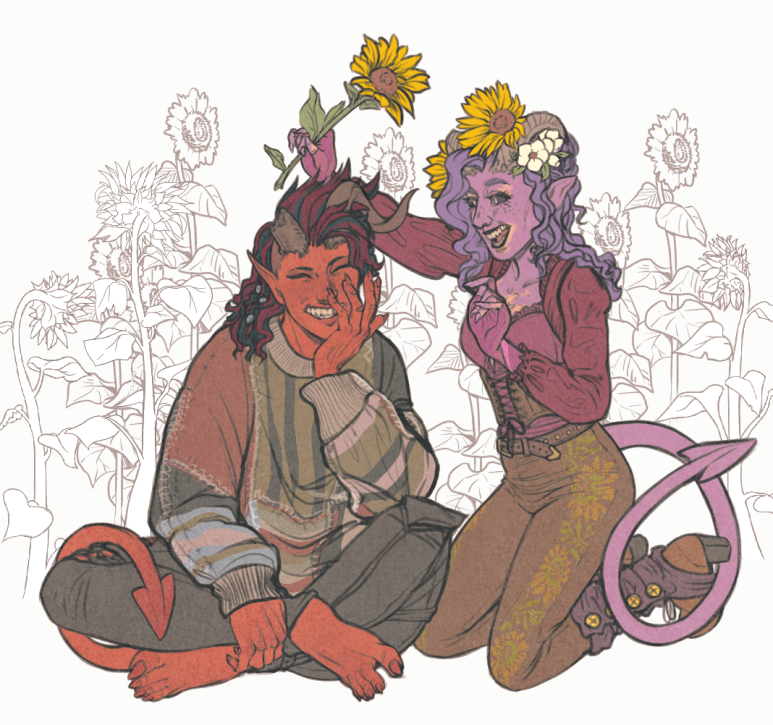 Ballofbitter requested Eos and Karlach and flower crowns, I hope you enjoy.