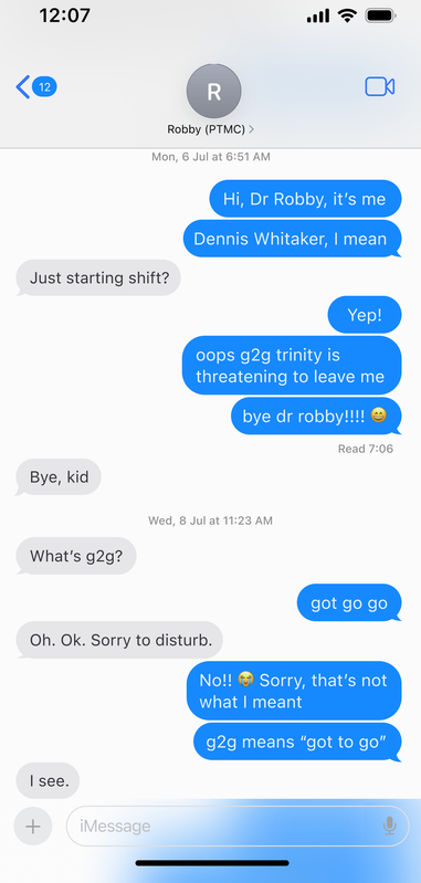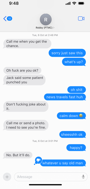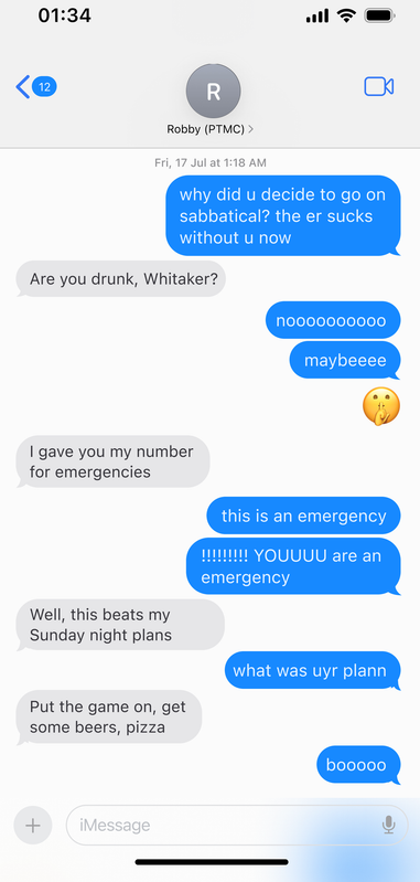 In the ER, it's a common joke that not even HR has Robby's phone number. Before he goes on sabbatical, Robby hands Dennis 10 digits scrawled on a post-it note. For emergencies.