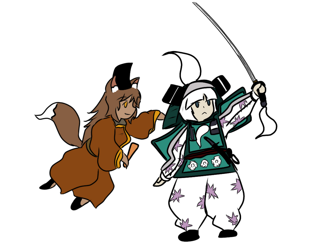 The kitsune says, turning to the girl at her side, her cheeks cherry-red as Youmu asks her to explain.