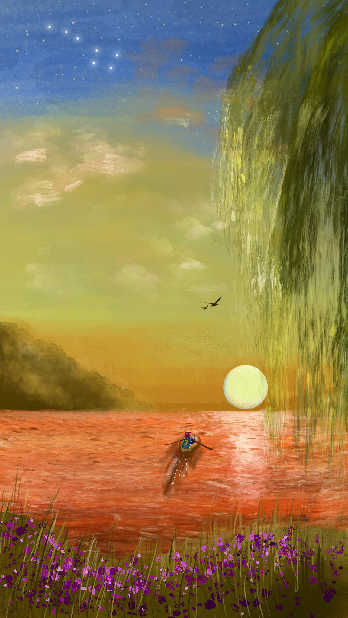 Timosia wavered. Although he was king, why did he feel like the most powerless man in the world now? Timosia looked at Karnak, drinking in his purple curls and blue eyes, now black in the dim morning light. Then he looked down at the purple silk, embroidered with intricate wave patterns. He remembered how Karnak had embroidered the scarf by the light of the kingdom’s fires as they fled. When asked about it, Karnak smiled and said that it was meant to be a victory banner.
