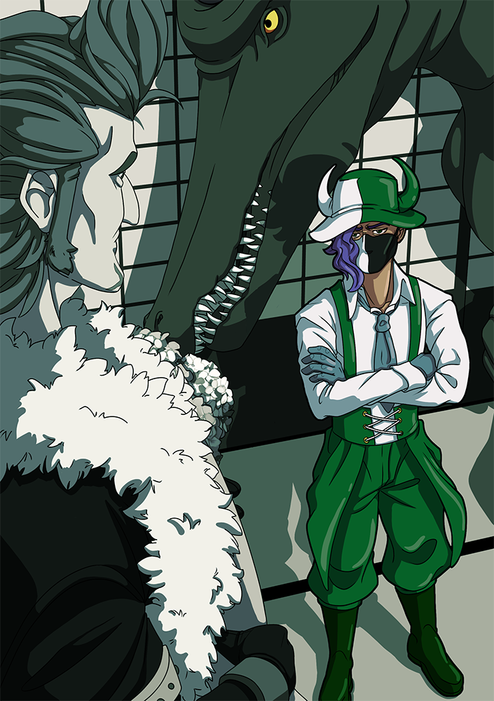 Greens represented prosperity and rebirth; as a witness to the plan Drake swore by, Page assumed the man meant it through the downfall of Kaidou and whatever grew from the refuse left behind.