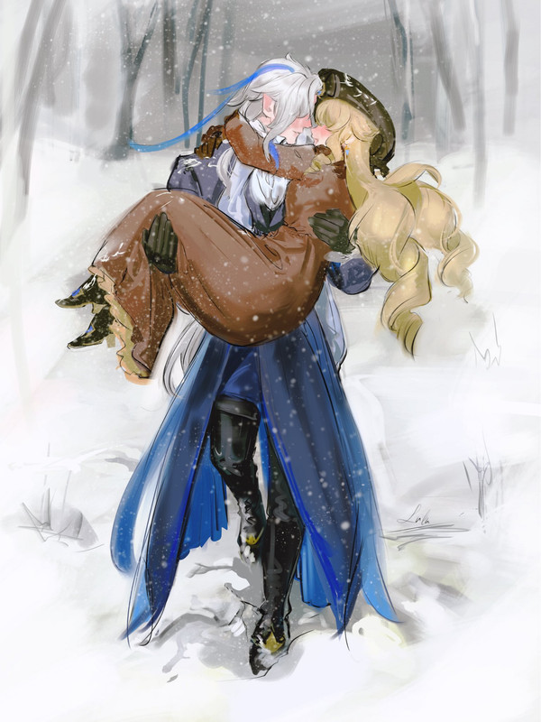 Navia smiled and kissed the corner of his lips. "Thank you for coming. I know you must be tired." He'd just retired from a ten-hour trial, after all. But snow visited the northernmost area of Fontaine only once a year, and really, what was she meant to do when he’d confessed to never having experienced a snowball fight in his life?
