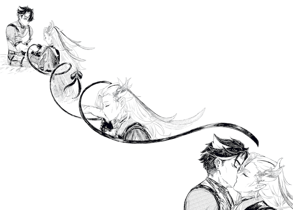 Neuvillette’s purrs sounded even louder as he started to slip away, his mate’s grip on him growing stronger, protective. Neuvillette never failed to make him feel safer than he’d ever been in his life.