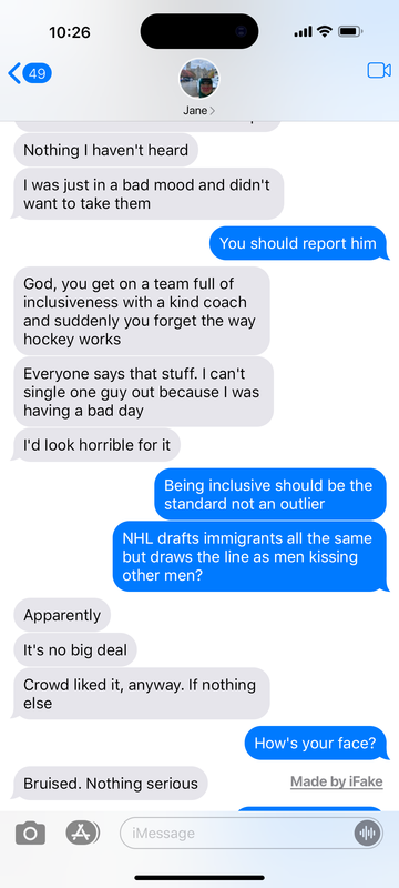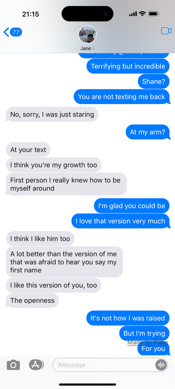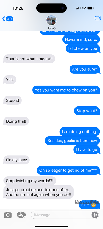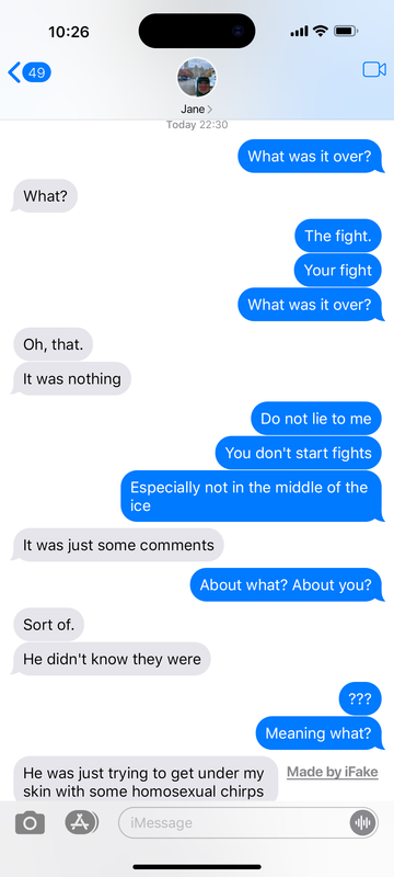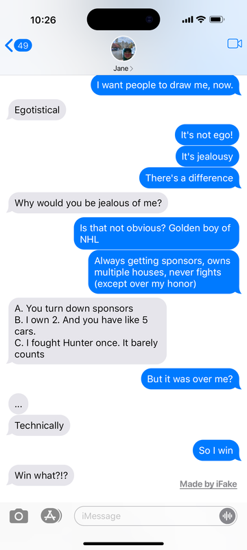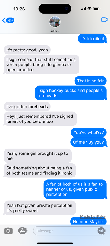 Hayden could feel his brain malfunctioning a bit as he scanned his eyes over the texts between them. The teasing tone was almost...easy. Familiar. It read like some sort of conversation he would have with some of the other guys; only Shane was never so informal with them or theatric in his texts.