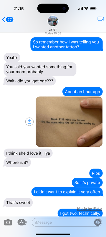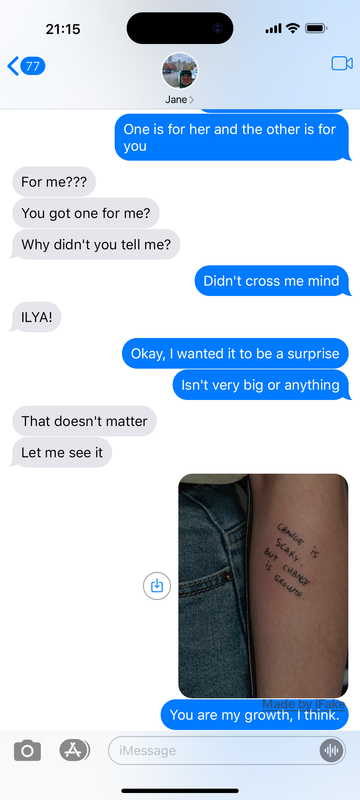 He was at least a few weeks ahead of them, reading everything, unlike Hayden who was mostly skimming as a way to try to preserve some of his best friends dignity. Hayden scrolled through a few dozen more texts, pausing when he saw some skin on display with fresh ink over it.