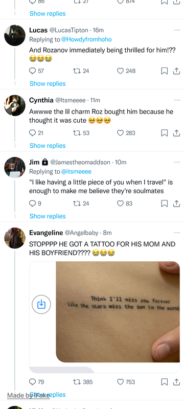 JJ huffed, rolling his eyes. “Then at least scroll, please,” he encouraged, gesturing with his hand. “I saw something about Rozanov kissing someone.”