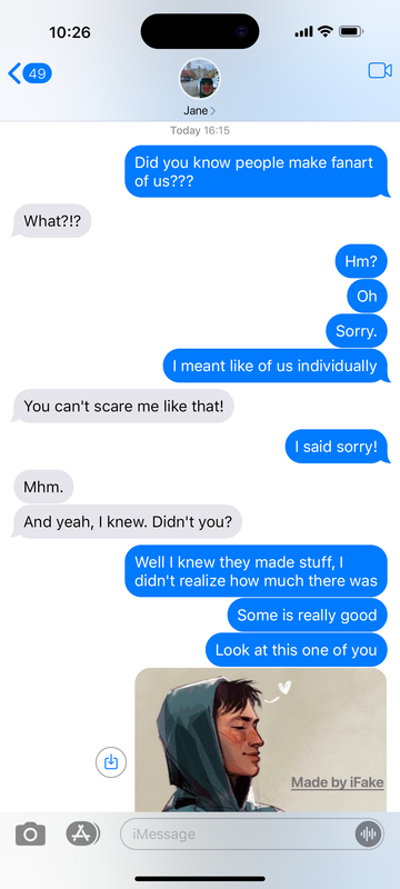 “Yeah, I know what you mean,” Hayden agreed, nodding slightly. “But he’s like…smitten or something,” he added, forehead creased slightly. “Look, he even sends Shane fanart he’s found.”