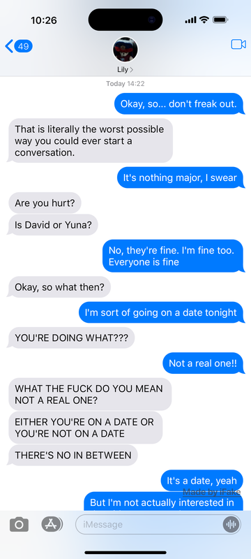 Hayden snapped out of his crisis, gaze immediately ducking back down to the screen because no, he hadn’t gotten to those texts, yet.