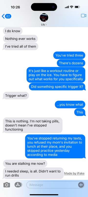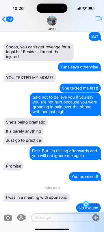 “I mean, Rozanov called Shane’s mom Yuna,” Berkes remembered. “The fact that she texted him first is a sign of familiarity. She probably knows him in real life aside from their rivalry.” He squinted at his phone. “Oh yeah, Shane’s parents both know him pretty well.”