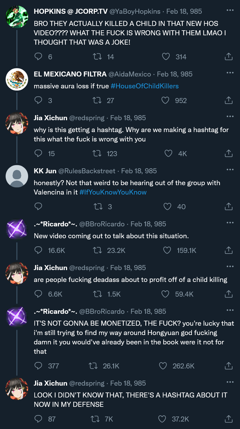 Did you not see that Spider Pyre quadruple stream Limbus Company set up? Turns out my daughter was under Temporal Entanglement. |