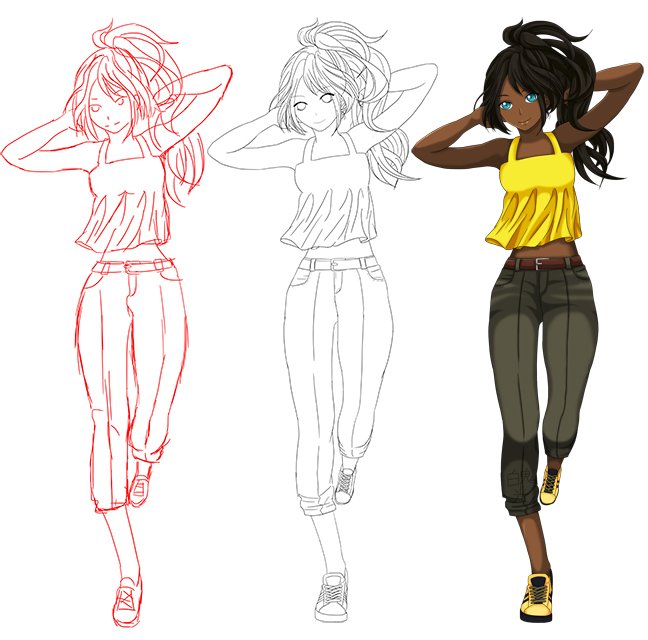 De aquí viene Helen, primero descanso, porque a Helen tengo que dibujarla en pose shounen y me late que me va a dar tantos problemas como Piper…