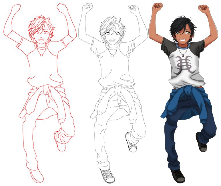 Tenía su expresión desde el principio fija en la cabeza, así que no me costó demasiado dibujarla. Niño feliz y juguetón.
