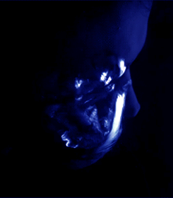 He cut her off by reaching across and holding her face in his bloody hands. She could feel the slick blood on his fingers as he looked down into her face. She furrowed her brow and stared up into his amber eyes.