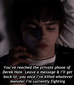 "Sheriff Stilinski here, give me a report on what's happening in the town...Yes, I know what day it is, and I am asking - No, ordering you to tell me about what's going on in my town, I don't care if it's a burglary, a break in or someone jaywalking, tell me what's going on right now!"